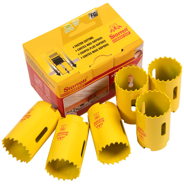 The Bulk pack of 6 Starrett Fast Cut Bi-Metal Holesaws. They provide a smoother, faster cut on a wide range of materials, when compared to the previous constant pitch saw. Improved tooth material and 5.5 TPI/25mm tooth form for enhanced heat and wear resistance and greater product life.