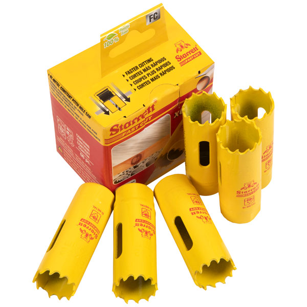 Bulk pack of 6 Starrett Fast Cut Bi-Metal Holesaws. They provide a smoother, faster cut on a wide range of materials, when compared to the previous constant pitch saw. Improved tooth material and 5.5 TPI/25mm tooth form for enhanced heat and wear resistance and greater product life.