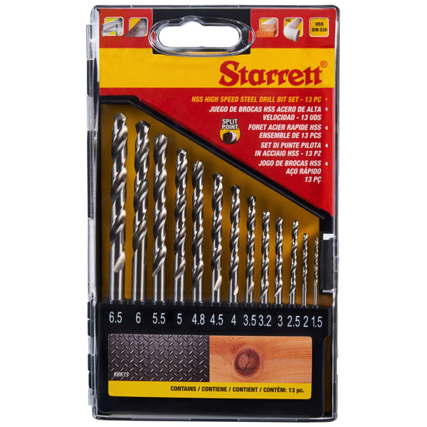 Starrett KBK13 HSS Split Point Drill Bit Set, 13 Piece