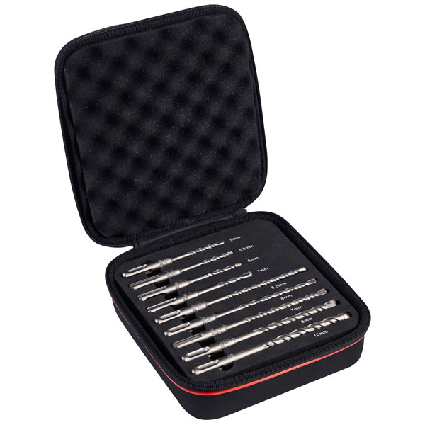 This 9 Piece Starrett SDS Plus 2 Point Drill Bit Set comes packed in a sturdy EVA carry case.