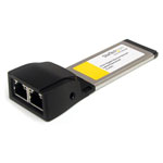 This EC2000S 2-port Gigabit ExpressCard Ethernet Adaptor from StarTech.com adds 2 10/100/1000Mbps Ethernet ports to an ExpressCard-enabled laptop, or small form factor system, enabling you to connect to two separate physical networks simultaneously with dedicated bandwidth, or providing full dedicated bandwidth to virtual machines.