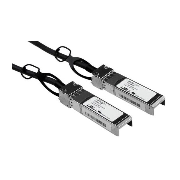The StarTech.com Cisco Compatible SFP+ cables are fully hot pluggable, direct attach cables, supporting 10 Gigabit Ethernet and Fibre Channel applications connected through (Small Form Factor Pluggable) SFP+ ports. Designed for short length, high speed interconnects, these low power, low latency Twinax cable are a cost-effective alternative to fibre optic cable assemblies. They are intended for applications such as point-to-point in-rack and across rack network switch/server connections.