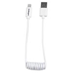 This coiled Lightning cable from StarTech.com delivers the compact convenience you need to keep your mobile devices charged while you're driving without cluttering up your car. Simply plug the cable into your USB car charger and stretch it out to connect your mobile device when you need to charge it. You can extend the cable up to 0.3m to comfortably reach your car-mounted tablet or phone.