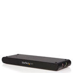The USBVGADOCK2 from StarTech.com is a combination USB VGA adaptor and 4-in-1 docking station that converts a single USB 2.0 port into multiple connection ports, including: a VGA port, 10/100 RJ45 network connection, dual (3.5mm phono) audio ports and four additional USB 2.0 ports.