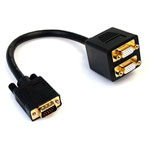 This VGASPL1VV VGA video splitter cable from StarTech.com lets you connect two VGA displays to a single VGA video source.