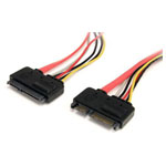 This StarTech.com SATA22PEXT 22-pin SATA Power and Data Extension Cable enables you to extend the reach of internal SATA power and data connections by up to 300mm. The extension simplifies drive installation by overcoming typical connection limitations, and it reduces the risk of damaging the SATA connectors by eliminating the need to strain the cable when making the connections.