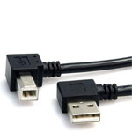 The StarTech.com USB2HAB2RA3 1m USB A to B cable features one USB A male connector and 1 x right angle USB B male connector, providing a USB 2.0 connection to peripherals such as USB printers, scanners or external USB hard drives.