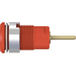 Insulated, rigid 4mm socket connector with gold-plated contacts, suitable for accepting spring-loaded 4mm plugs with rigid insulating sleeve. Panel mount by bolting through cutouts in plates or housings made of plastic, metal, etc.