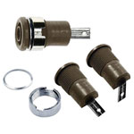 4mm rigid socket in insulated body, with 4.8mm male spade connector. Suitable for accepting spring-loaded 4mm plugs with rigid insulating sleeve.