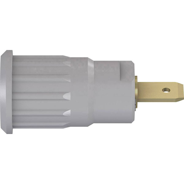 4mm rigid socket in insulated body, with gold-plated contacts and 4.8mm male spade connector. Suitable for accepting spring-loaded 4mm plugs with rigid insulating sleeve.