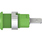 Insulated, rigid 4mm socket connector, suitable for accepting spring-loaded 4mm plugs with rigid insulating sleeve. Panel mount by bolting through cutouts in plates or housings made of plastic, metal, etc.