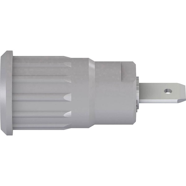4mm rigid socket in insulated body, with 4.8mm male spade connector. Suitable for accepting spring-loaded 4mm plugs with rigid insulating sleeve. Push-fit mounting into cutout holes of plates or housings made of plastic, metal etc.