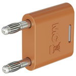 Insulated, 4mm, plug connector. Made of brass, featuring plugs with spring MULTILAM contact technology. Two axial, rigid 4mm sockets, suitable for accepting spring-loaded 4mm plugs are provided at the rear.