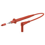 Highly flexible safety test probe lead, with PVC insulation. One end has a 4mm probe tip with sprung MULTILAM, other end has a 90° angled 4mm lamella plug with rigid insulation sleeve. Supplied with a protective cap.