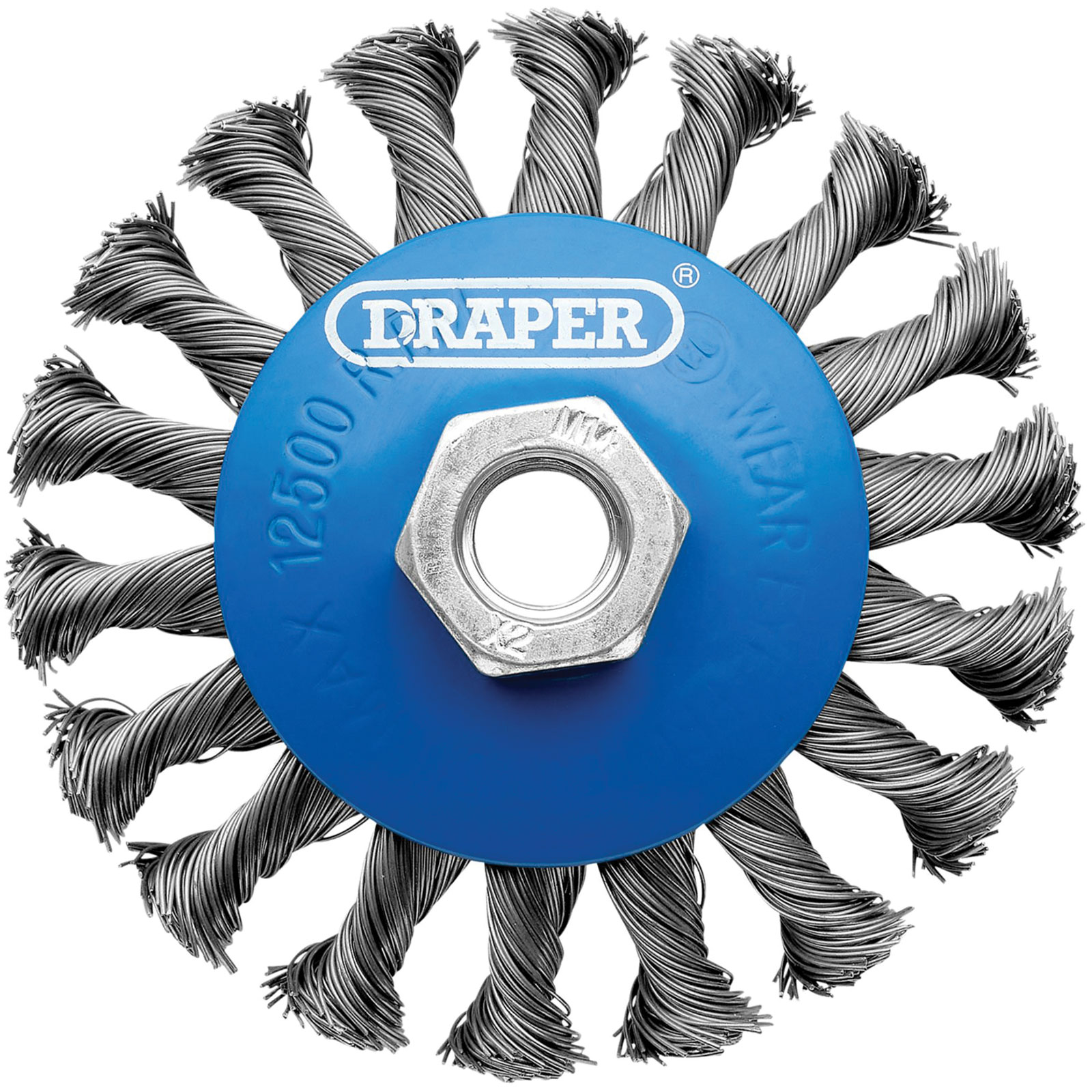 Draper 08063 Steel Bevelled Twist-Knot Wire Wheel Brush, 115mm, M14