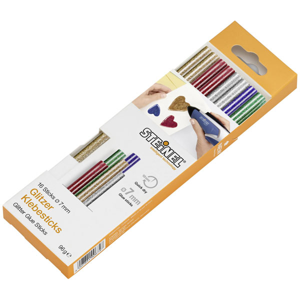 Steinel 065539 Hot Melt Glue Sticks 7mm Gold/Silver/Green/Blue/Red 16pcs