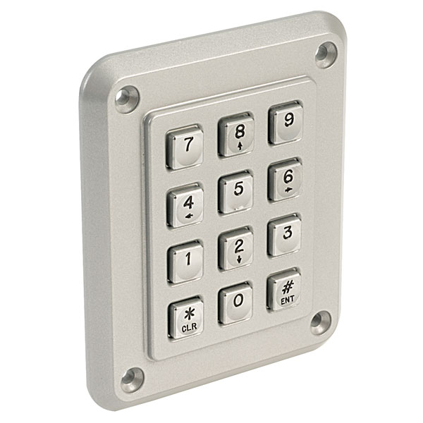 These silver-coloured 12-key calculator-style public use/outdoor environment keypads are vandal resistant and ideally suited for applications requiring toughness and resistance to water or dust.
