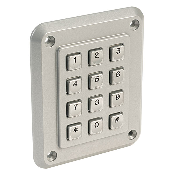 These silver-coloured 12-key telephone-style public use/outdoor environment keypads are vandal resistant and ideally suited for applications requiring toughness and resistance to water or dust.
