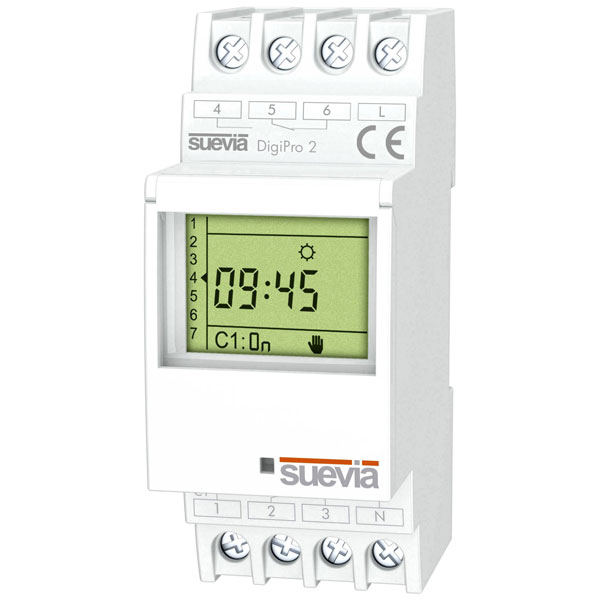 Suevia SU171912 DigiPro 2 Timer 250V AC 16A 2 Change-Overs DIN Rail Mount