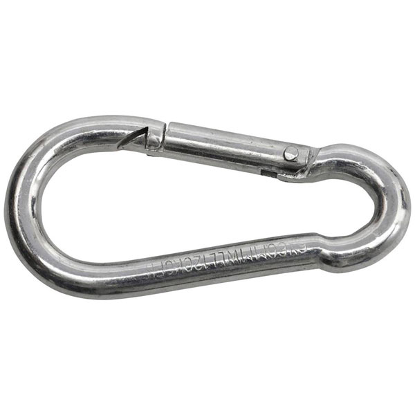 SWG manufactures the fire brigade spring hook, made from galvanised steel, measuring 60 mm by 6 mm. This durable and reliable snap hook is essential for personal protective equipment and climbing safety equipment. It is typically used in fire and rescue operations.