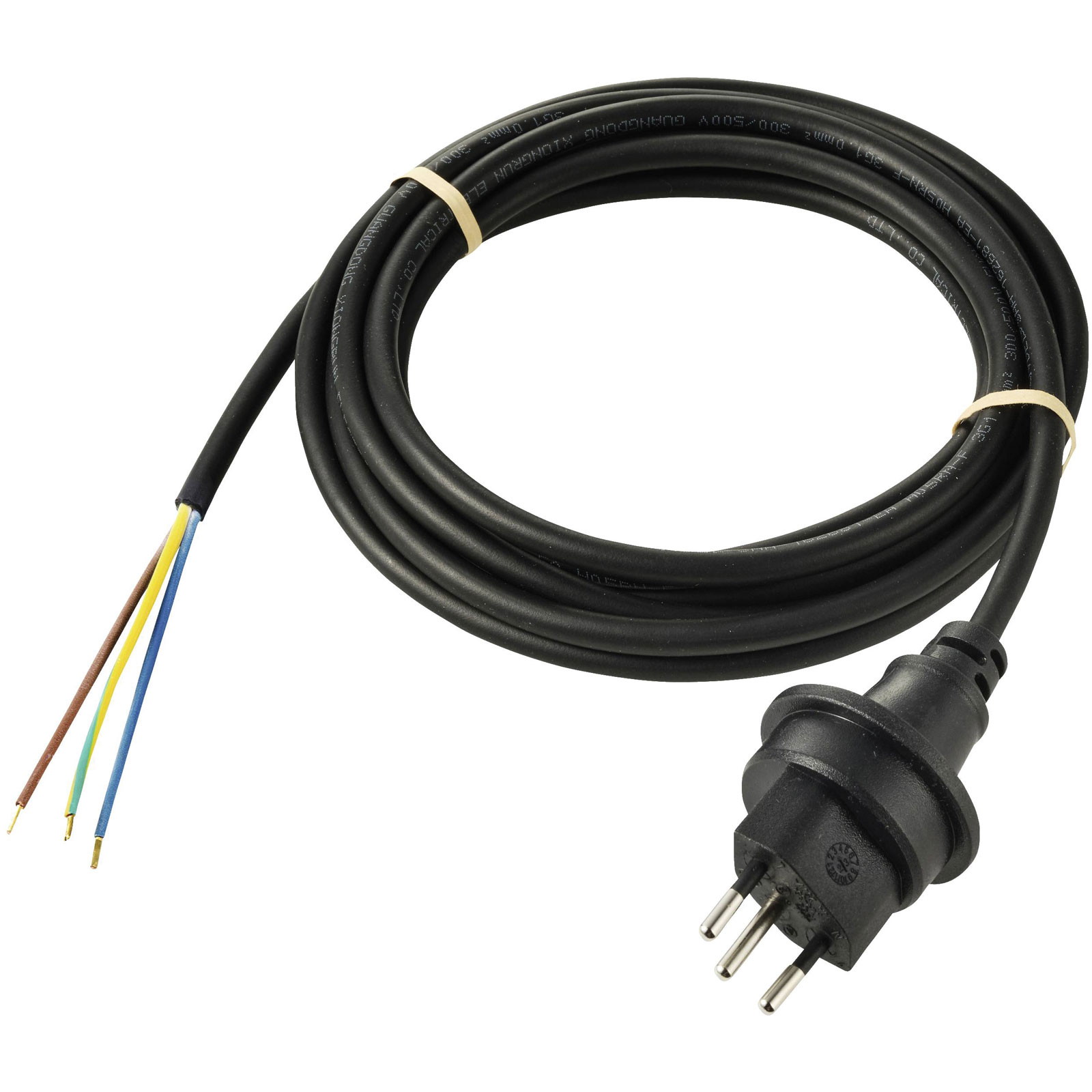 3m Black weatherproof H05RN-F 3G 1 mm² Switzerland plug 10A Mains cable Open cable ends 250V AC