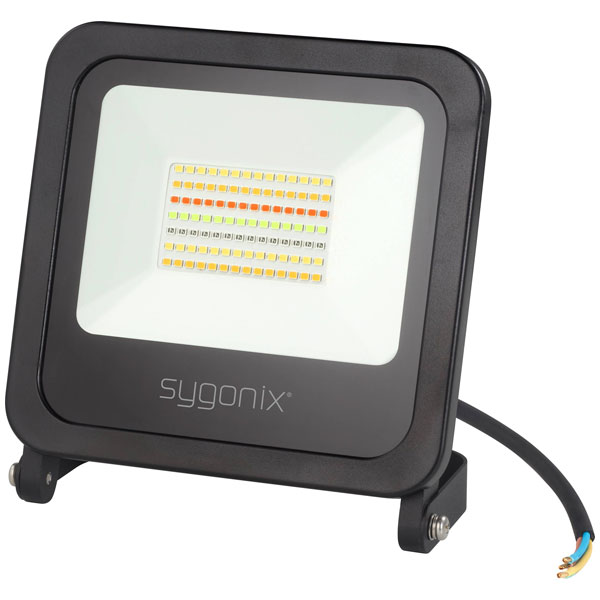 The Sygonix SY-4782322 is a 45 W LED outdoor floodlight with an energy efficiency class of F, offering neutral white, warm white, and RGB lighting options. It is ideal for illuminating gardens, patios, and building exteriors. This versatile floodlight combines energy-efficient LED technology with robust outdoor performance.