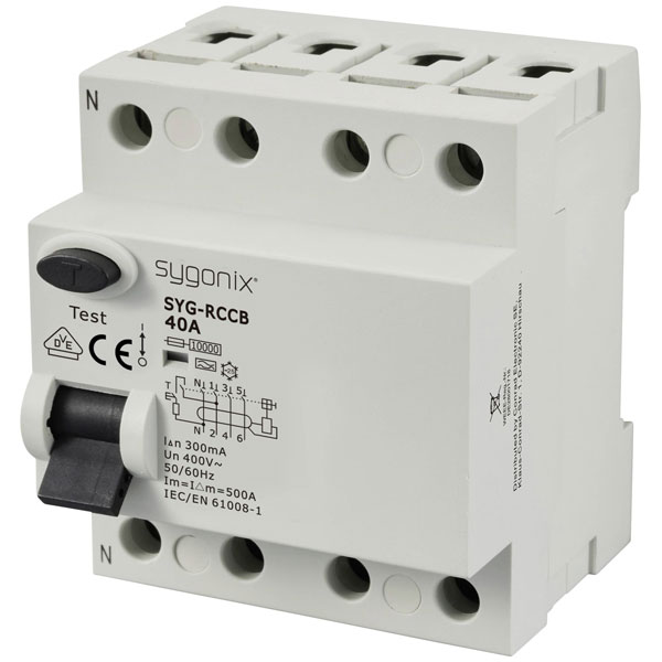 Sygonix SY-6438022 RCCB 4-pin 40A 0.3A 400V AC 3P+N 10kA 300mA