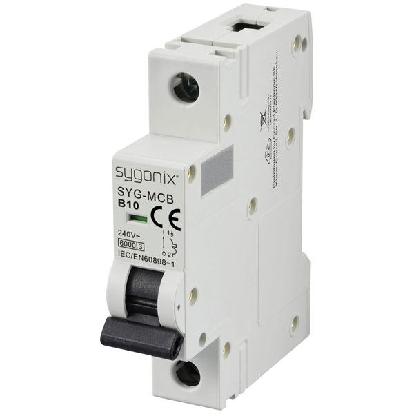 The Sygonix SY-6440876 SYG-MCB 1P/B10/6KA Circuit breaker is designed for reliable electrical protection with a single-pin setup, supporting a current of 10 mA at 240 V AC. This circuit breaker, produced by Sygonix, offers a breaking capacity of 6 kA, making it suitable for residential and light commercial applications. It ensures safety by preventing circuit overloads and short circuits, ensuring stable and efficient electric supply management.