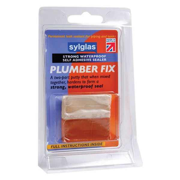 Plumber Fix is a 2-part epoxy (with resin and hardener of differing colours so that when kneaded together, complete mixing is easily observed) that hardens to form a strong, waterproof, self-adhesive seal.