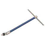 High quality Chrome Vanadium steel T-handle socket driver. Anodised outer sleeve rotates freely to enable speed action when spinning off fixings. Combination rigid/flexi-head drive with quick-release locking mechanism, retains sockets until released. T-handle can be set in two positions. Can be used as an extension bar.
