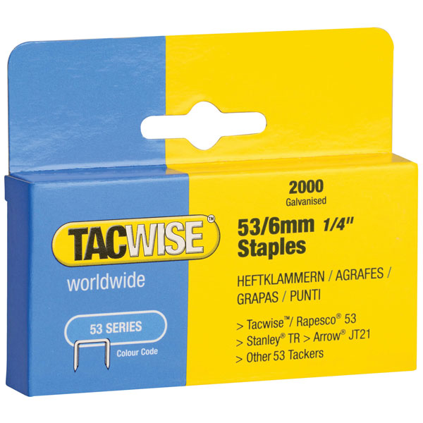 Tacwise 0334 53 Light-Duty Staples 6mm (Type JT21 A) Pack 2000