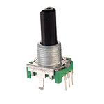This incremental rotary shaft encoder has terminals arranged for vertical mounting. The resolution is 24ppr and there are 24 detents per revolution. The robust construction and long operating life makes this encoder suitable for applications that require precise shaft unlimited rotation.