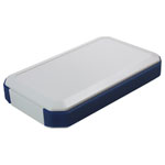 IP67 white/blue handheld enclosure from Takachi's 90 Series with a stylish design and chamfered edge. Manufactured from flame-resistant ABS UL94-V0 and suitable for various hand-held apparatus, such as measuring instrument, inspection machine, transmitter and medical equipment.