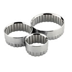 Circular pastry cutters with fluted edges, ideal for use in the home and in the classroom.