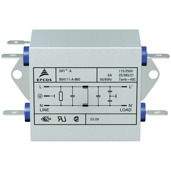 TDK B84111AB120 EMI filter 250 V AC 20 A 0.47 mH 63.5x77x38.1mm flame retardant