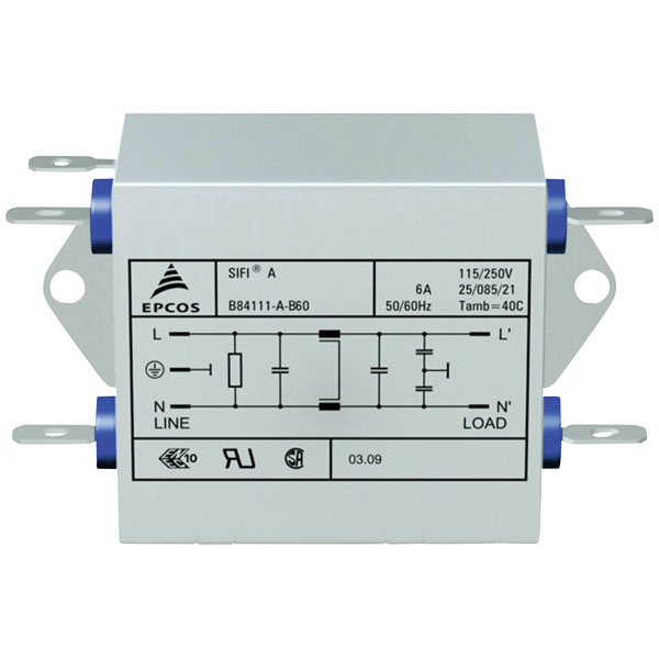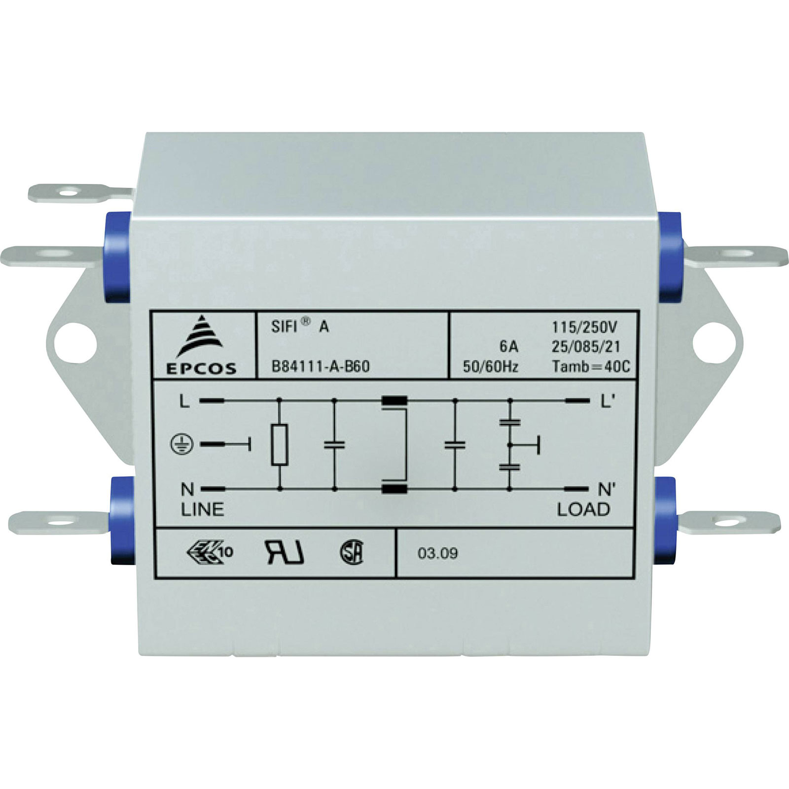 TDK B84111AB60 EMI filter flame retardant 250V AC 6A 1.8mH 45x76.5x28.6mm