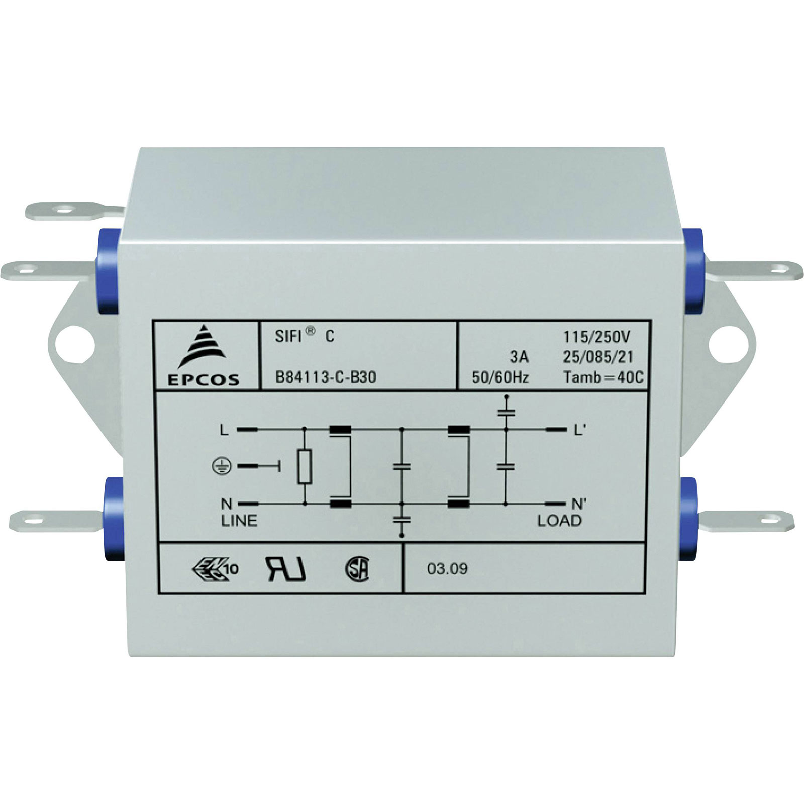 TDK B84113CB110 EMI filter flame retardant 250V AC 10A 159x50.8x44.5mm