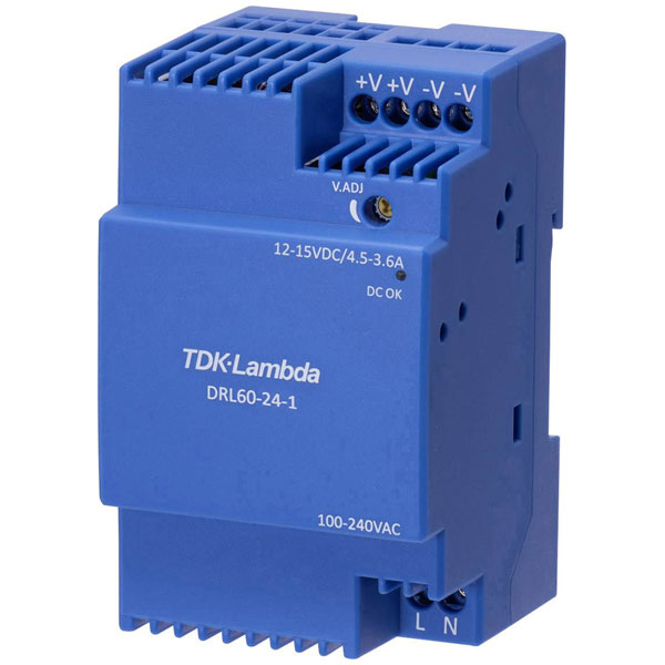 TDK-Lambda DRL60-12-1 DRL Rail PSU 12V 4.5A 54W Rail mounted fits narrow spaces