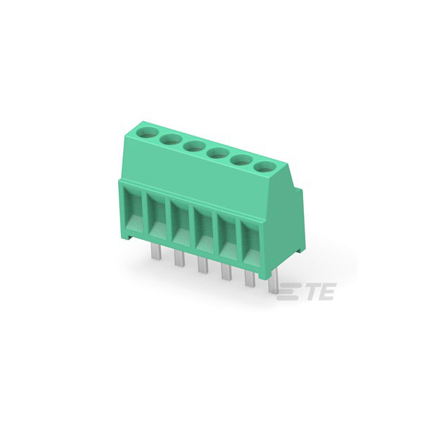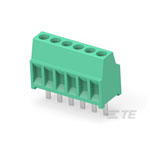 The TE Connectivity 282834-6 is a fixed terminal block featuring six positions and a 2.54mm side entry.