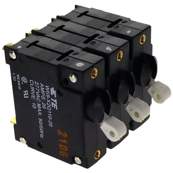The TE Connectivity 8-1393253-1 is a W69 series circuit breaker designed for a 20A current rating.