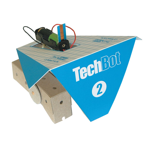 Techbot 2 from TechCard can climb over uneven surfaces and obstacles. TechCard has been specifically developed for Design & Technology in education and is based around a set of pre-cut, scored and punched card components.