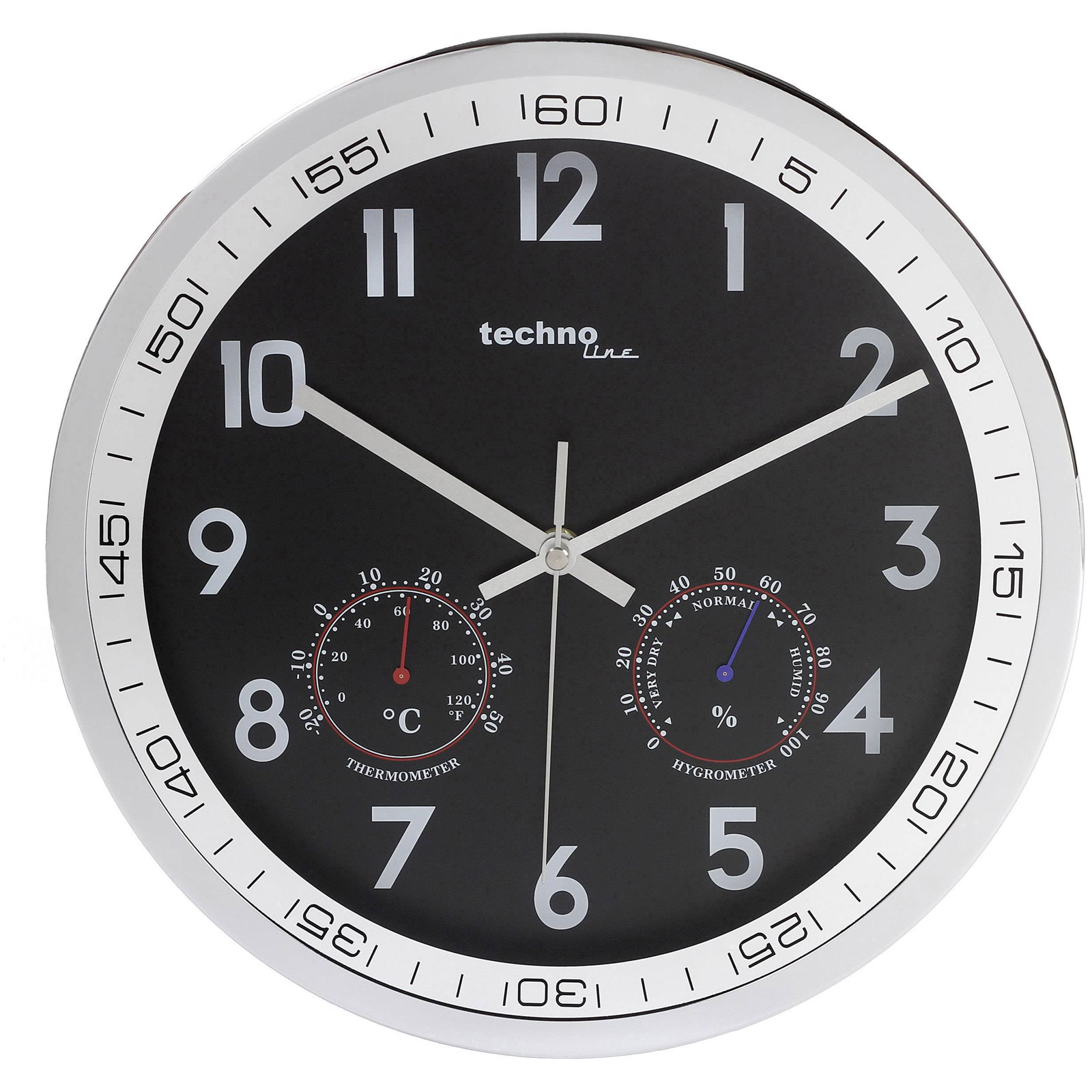 Techno Line WT 7981 Quartz Wall Clock Chrome 300 mm x 5 cm