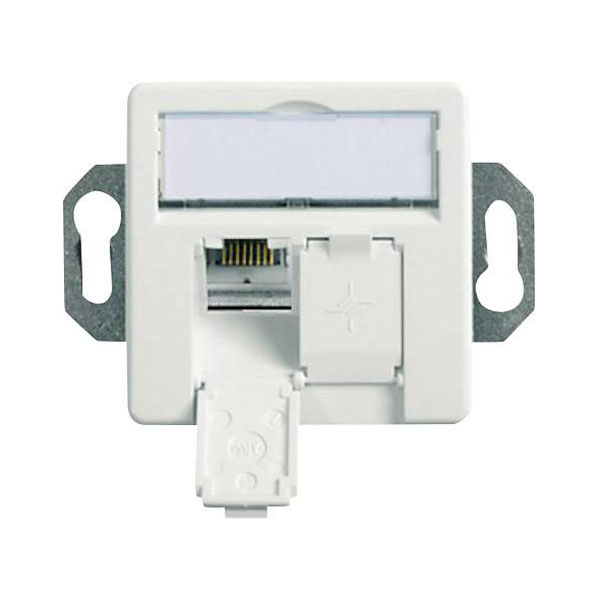 The Telegärtner network outlet is a flush mount insert with a main panel, offering CAT 6A compatibility and featuring two Alpine white ports. It is designed for high-speed data transmission, making it suitable for LAN and broadband applications. This outlet is ideal for neatly integrating network sockets into walls in both residential and commercial settings.