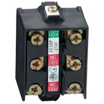A limit switch contact block with 2NC+1NO, snap break, break-before-make contacts.