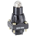 A roller plunger head limit switch head from the Telemecanique ZCKD series. The switch head is operated by lateral movement.