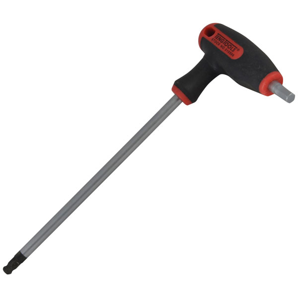 This Teng Tools Hex key with T-handle has a short arm and a long arm. The short arm allows excellent leverage, allowing easy tightening and loosening. The long arm of the Hex key has a ball point head, which allows a working angle of up to 30 degrees and therefore improves access.