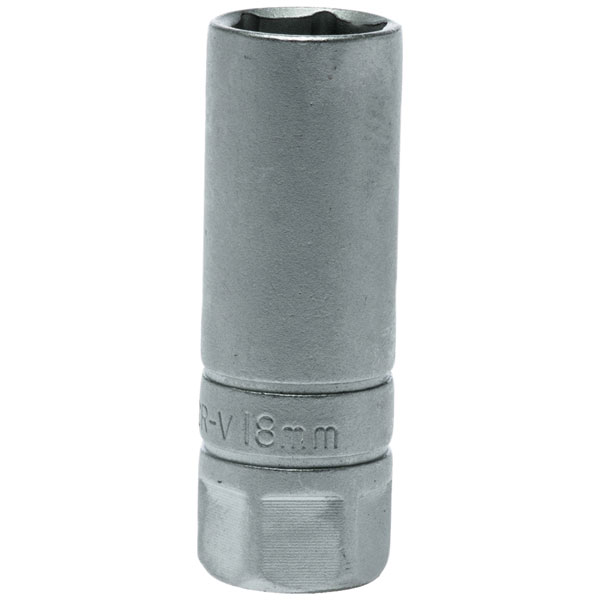 1/2in Square Drive 6-Point Spark Plug Socket made from chrome vanadium steel with a satin finish and with a rubber insert.