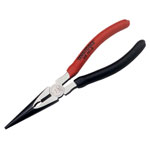 These Teng Tools Long Nose Pliers have long, straight jaws with serrated grip surfaces and allow up to a 72 degree cutting angle. They are made from high Carbon Steel, with Titanium coated joints for excellent strength and durabililty. For a comfortable grip, the pliers have vinyl coated handles.