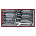 These Teng Tools Midget Combination Spanners combine an open ended spanner with 12-point ring head. The ring head is set at a 15° angle for ease of access. Each spanner has same dimension at both ends. They are much smaller in length than traditional spanners, ranging from 95mm to 140mm in length. This ensures that they spanners are ideal for working in confined areas or where space is limited.