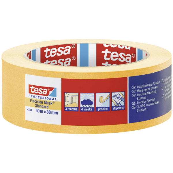 tesa's Precision Standard masking tape is 50 meters long and 38 millimetres wide, providing excellent coverage for painting tasks. Its Präzisionskrepp® yellow design ensures sharp paint lines and is suitable for both professional and DIY projects. Ideal for protecting surfaces during painting, it is reliable for precision applications.